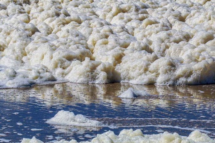 Video yang menunjukkan permukaan laut di sekitar Jembatan Suramadu dipenuhi busa putih mendadak viral di media sosial. Dalam rekaman itu terlihat gumpalan busa menyerupai busa sabun mengapung di tepian laut dan terus bergerak mengikuti arus. Fenomena tersebut menimbulkan beragam spekulasi, mulai dari dugaan pencemaran industri hingga fenomena alam di Jembatan Suramadu, Surabaya (4/12)