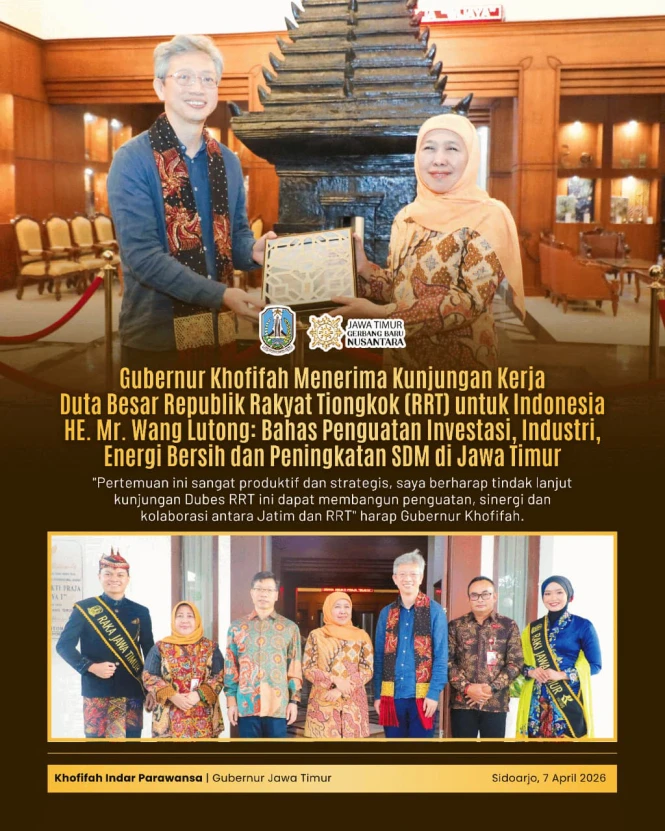 Duta Besar Wang Lutong juga menekankan bahwa pihaknya membuka peluang lebih luas bagi investor untuk masuk ke Jawa Timur, termasuk kerja sama industri dan pengembangan tenaga kerja.