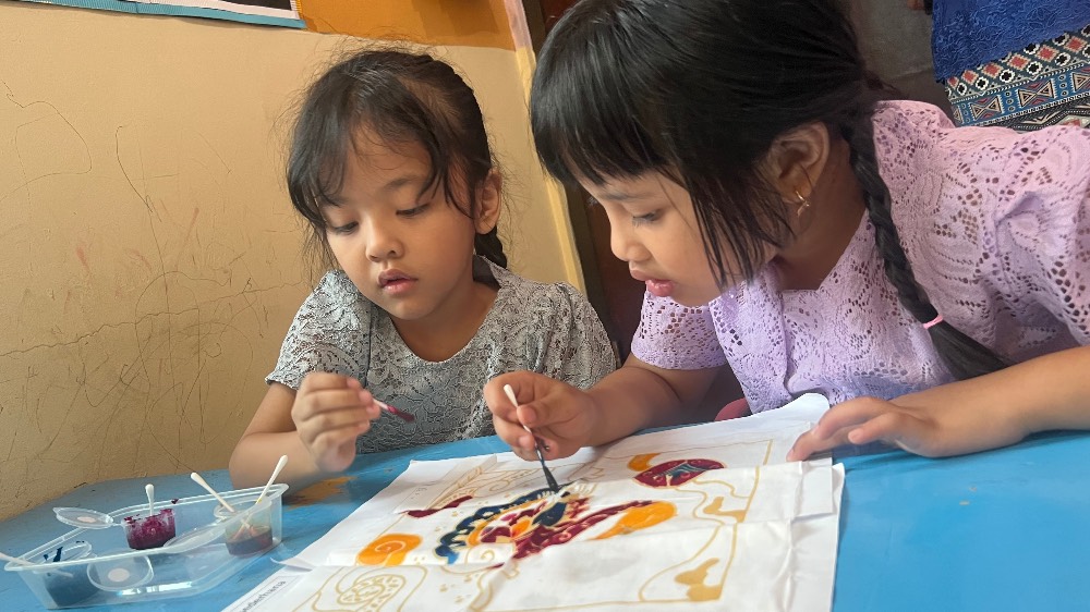 Kegiatan kemudian dilanjutkan dengan lomba membatik sederhana yang dirancang khusus untuk anak usia dini. Melalui aktivitas ini, siswa diperkenalkan pada salah satu warisan budaya Indonesia, Batik Indonesia, dengan cara yang menyenangkan dan mudah dipahami.